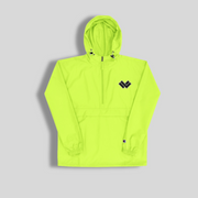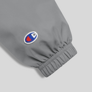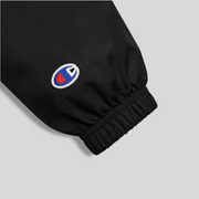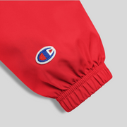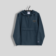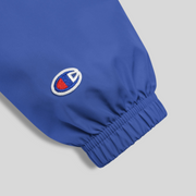 The perfect LAX World x Champion's Men's Cradle Multi-Shaded Packable Lacrosse Jacket for light rain or something to throw on after practice. High quality LAX World Cradle logo embroidery on left chest. Protect yourself from the elements with this Champion packable jacket. This wind and rain resistant polyester jacket with a detailed embroidery design has a practical hood, front kangaroo pocket, and zipped pouch pocket which you can pull out and use to scrunch the jacket into for convenient storage.