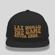 Shop our Premium “The Game Never Ends…” Snapback Lacrosse Hat today and let your wardrobe be a statement piece that makes a difference.